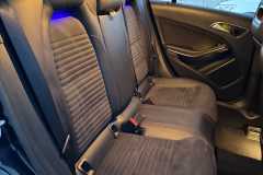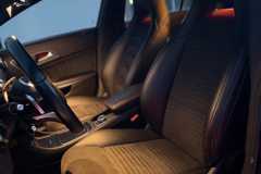 Fotele: Sportowe fotele z tapicerką łączoną (skóra ekologiczna ARTICO / mikrofibra DINAMICA) z kontrastowymi czerwonymi przeszyciami.